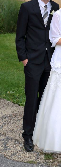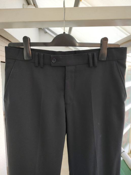 Klasično crno muško odijelo marke Di Caprio, kupljeno u Varteksu. Na oba dijela piše veličina u cm - 96, a ona odgovara ovim mjerama za: SAKO (obujam prsa 108, obujam struka 98, širina leđa 46, dužina rukava 65, dužina sakoa 76) i HLAČE (obujam struka 87, obujam bokova 106, obujam bedra 67, unutarnja dužina nogavice 86). Odijelo je nošeno 2 puta te je u potpunosti očuvano. Stavljam na prodaju jer je dečku postalo malo.