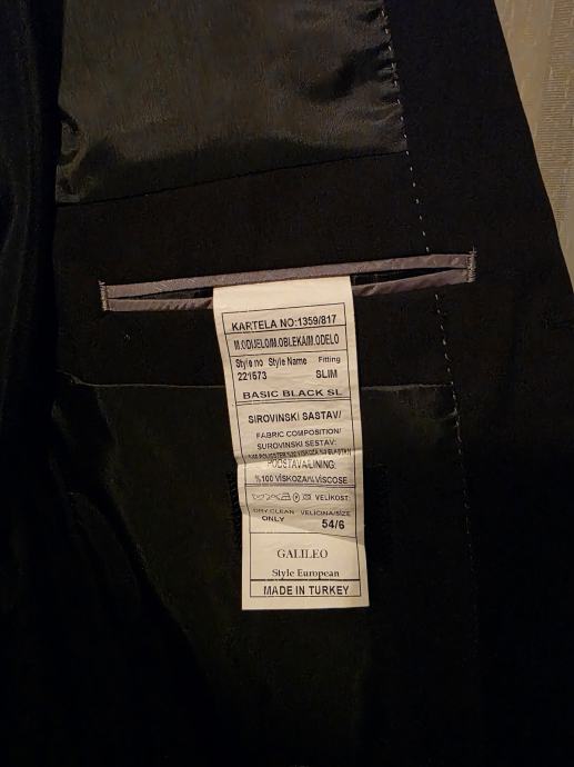 Prodajem Galileo crno odijelo, velicine L-XL, slim produženi. Hlače su veličine 48/54, a sako 54/6. Odijelo je u vrlo dobrom stanju (9/10), bez vidljivih tragova korištenja, kemijski je očišćeno i ispeglano.