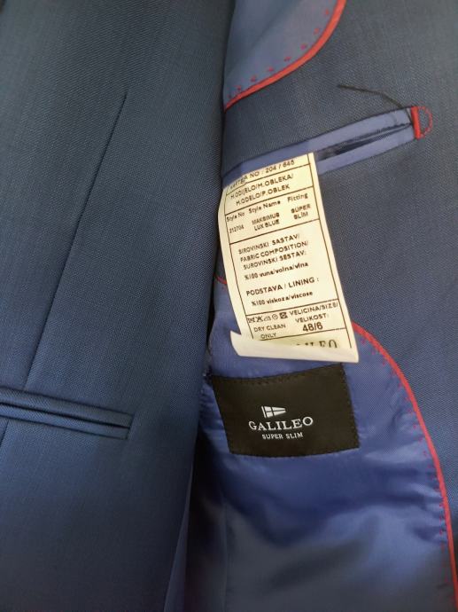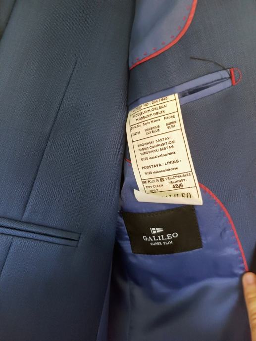 Odijelo Galileo sa prslukom, jednom nošeno za svadbu kemijski očišćeno i od tada stoji u galileo zaštiti za odijela zatvoreno u ormaru. Veličina 48 super slim fit. Cijena je fiksna jer je odijelo kao novo.