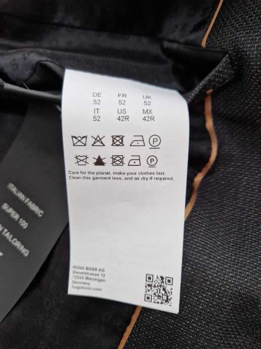 Novo, nenošeno, bez etiketa. Hugo Boss Boss Camel vuneno tamnosivo odijelo. Sako i hlače od odijela (na crtu). Vel. 52. Dolazi uz originalni dust bag.