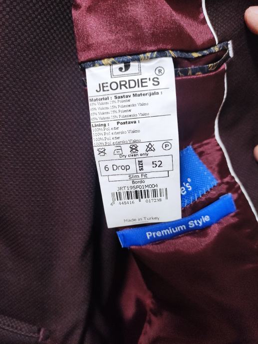 Prodajem Jordies muško odijelo nikad nošeno, slim fit, broj 52, hlače i sako, jako lijepa bordo boja, uživo puno ljepša nego na slikama.