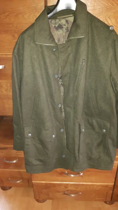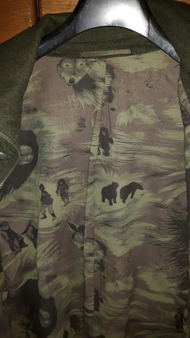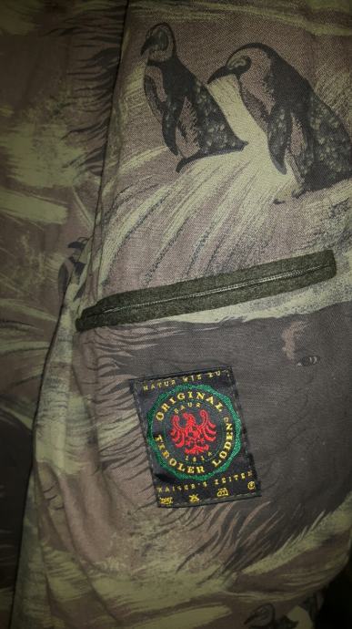 Izvorni Tirolski loden.lovacka jakna je prirodni materijal s velikom tradicijom i za max udobnost.Vodootporna ,otporna na vjetar i prozracna,pruža zaštitu od najgorih vremenih uvjeta.Regulira tjelesnu temperaturu,jedinstveno izdrzljiva i gotovo neuništiva.Materijal je 100% vuna alpake,jako je mekana.Maslinaste je boje,na potstavi su otisnuti motivi životinja ,lova i lovaca.Može se svestrano kombinirati luksuzan i ultra udoban i mekan mnogo godina štiti od vjetra i vremenskih uvjeta.Potpuno nova,br.52