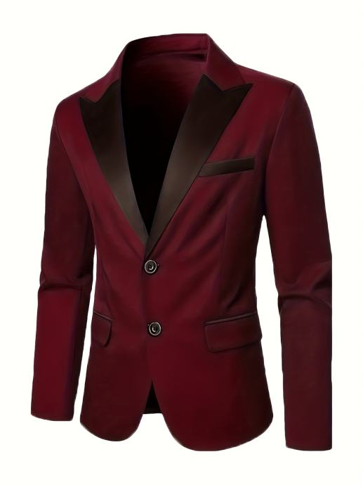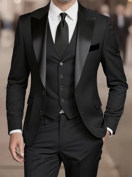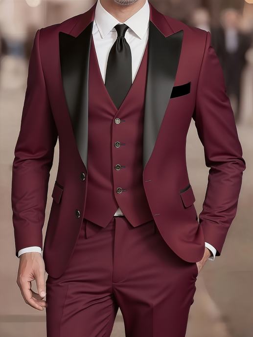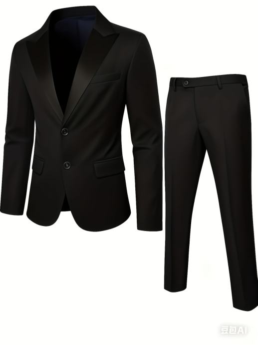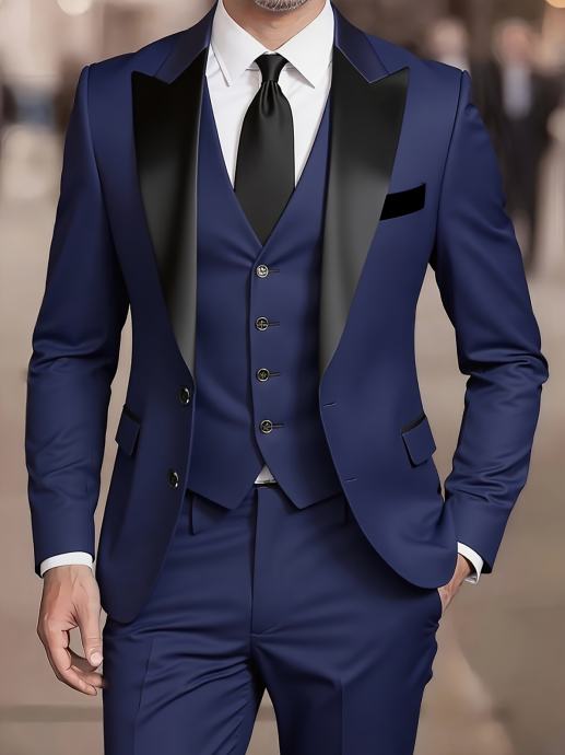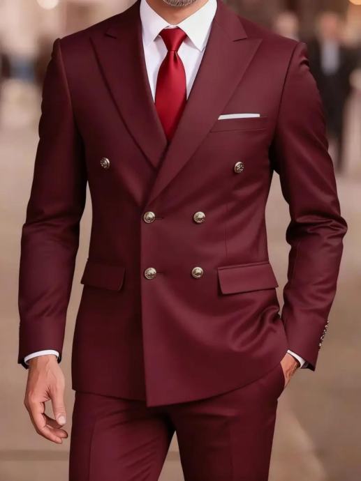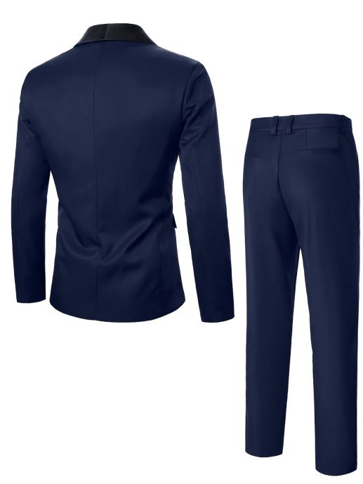 Luksuzno dvodijelno odijelo za muškarce, sa sakoom s ovratnikom od šala i hlačama, prikladno za formalne prigode, vjenčanja, radnu odjeću i blagdanske poklone.