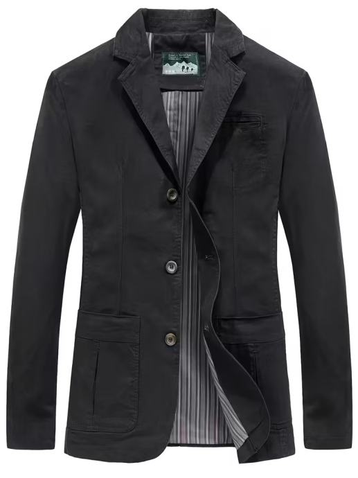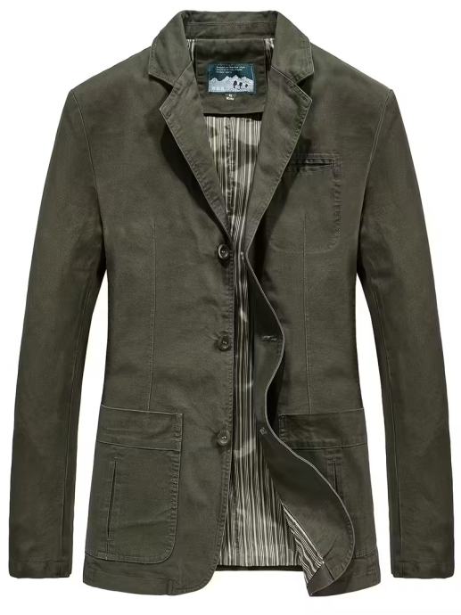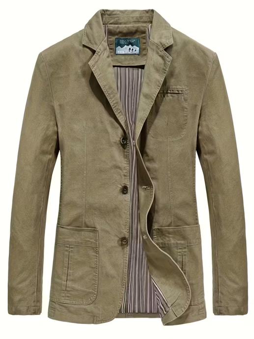 Muški ležerni radni sako - Lagani jednoredni kaput s reverima i džepovima na prsima, prozračna ventilacija ispod pazuha i tkanina periva u perilici rublja za proljetno/jesensko razdoblje, lagana gornja odjeća, tkanina prirodnih boja