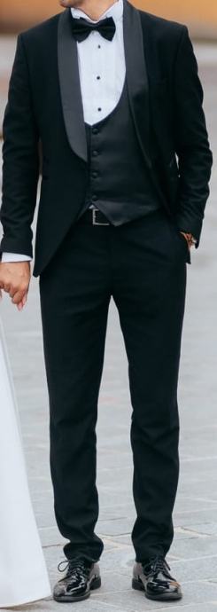 Prodajem odijelo kupljeno u Royal Black-u. Uz odijelo ide i svečana košulja s crnom dugmadi, leptir mašna, manžete i lakirane cipele br. 42.