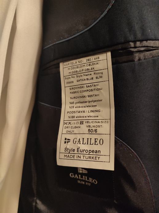 Prodajem odijelo GALILEO model slim fit.Odijelo je plave boje što se može vidjet na slici.Veličina odijela je 50,košulja M veličina,u kompeltu ide i kravata te marama za džep sakoa.Odijelo samo jednom nošeno,plačeno 2800kn.Moguća mala korekcija cijene.