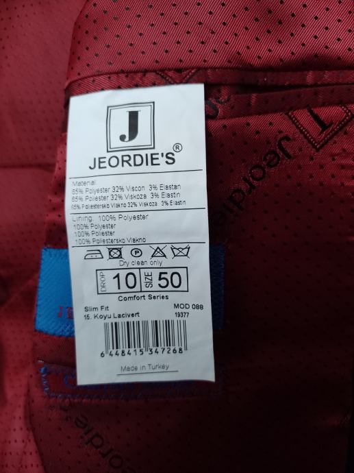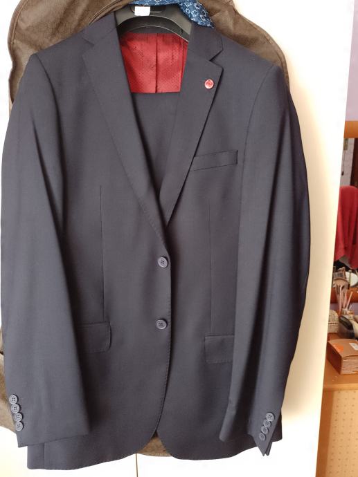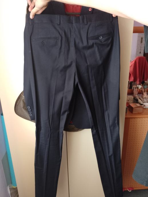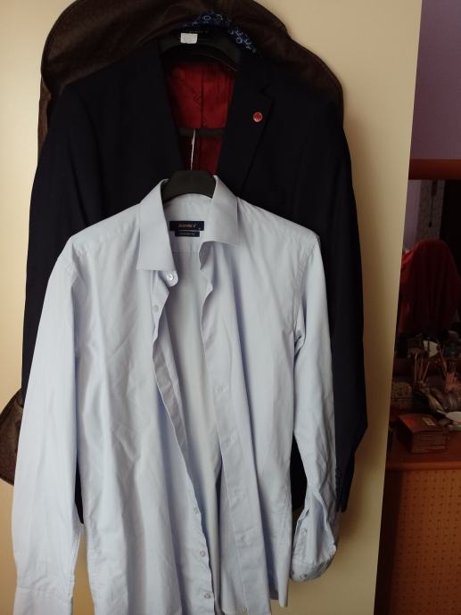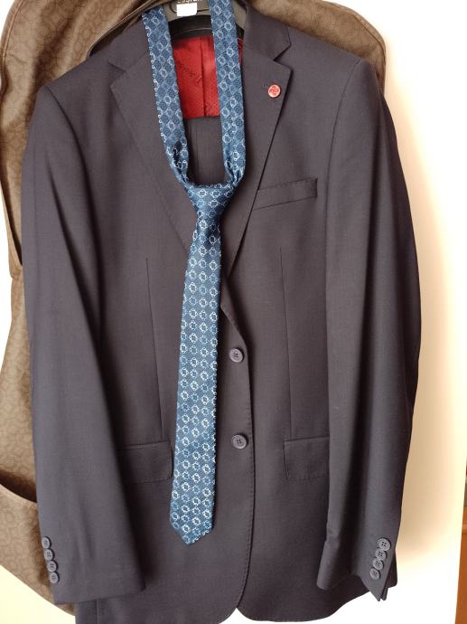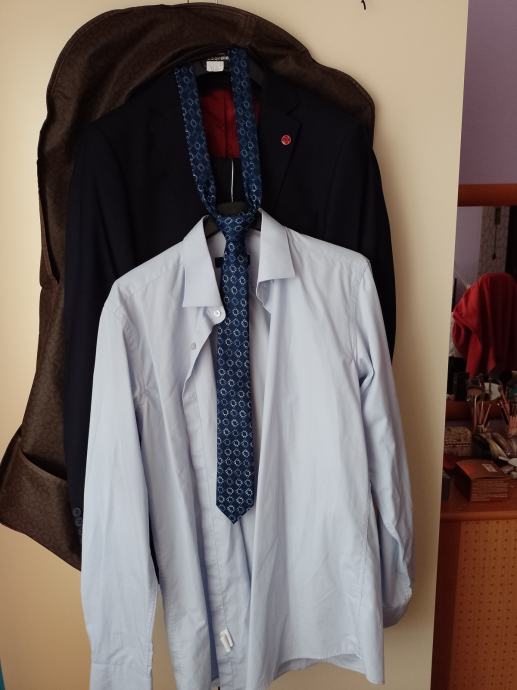 prodajem muško odijelo,košulju i kravatu sa zaštitnom futrolom,sve marke JEORDI,S, vel.50,za visinu 180-185 cm. Kupljeno za potrebe mature i jednom korišteno,sačuvano. Uz odijelo dajem i još jedne hlaće,vidi sliku,također jednom korištene za svećanu priliku.Sve u kompletu se prodaje za 100 eura.