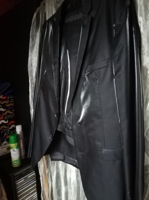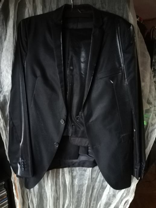 Crno, svečano, muško odijelo, sjajni crni lister,