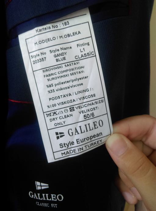 Plavo moderno Galileo odijelo, noseno jednom...