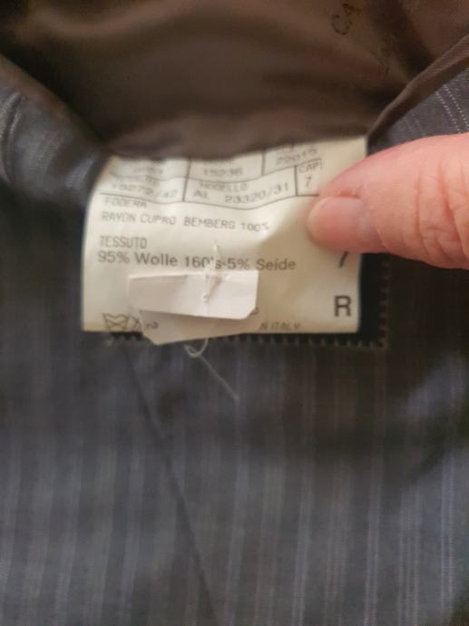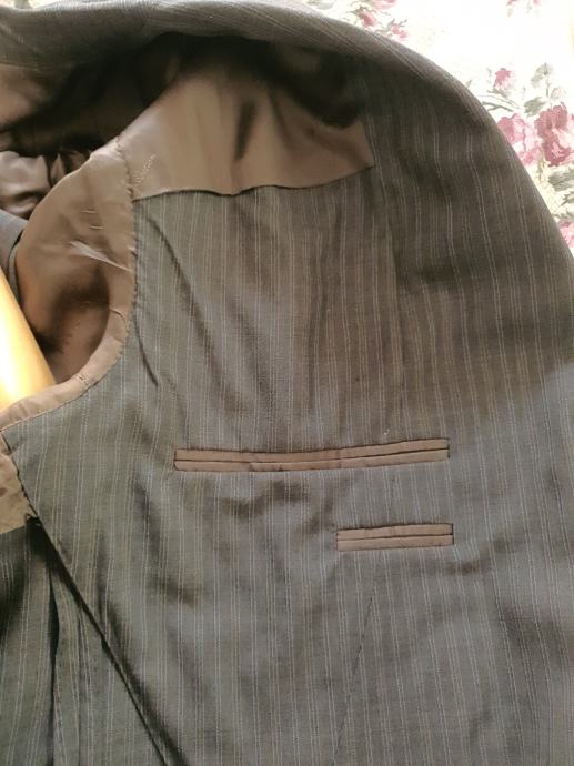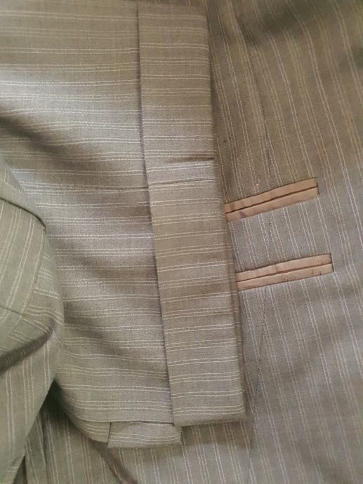 Mjere odijela: Prsa 51 cm, ramena 51 cm, dužina sakoa od kragne 82 cm, leđa 60 cm ( ispod rukava), dužina rukava 64 cm, hlače pojas 50 cm, dužina nogavica 114 cm ( od pojasa).