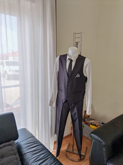 Muško svečeno odjelo sa prslukom staro 6 godina nošeno nekoliko puta, a sad pošto sam dobio na težini malo je. Stanje kao na slici materijal se ne gužva stanje za mene vrlo dobro.