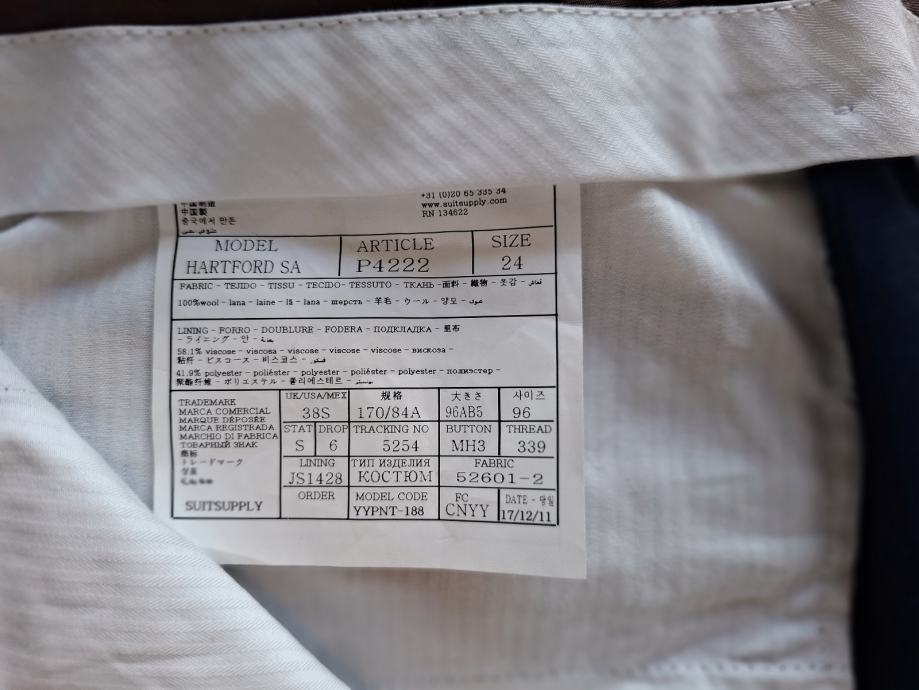 Odijelo je nedavno kupljeno, ali nije nošeno. Prodaje se po znatno nižoj cijeni od tržišne, imajući u vidu brend.