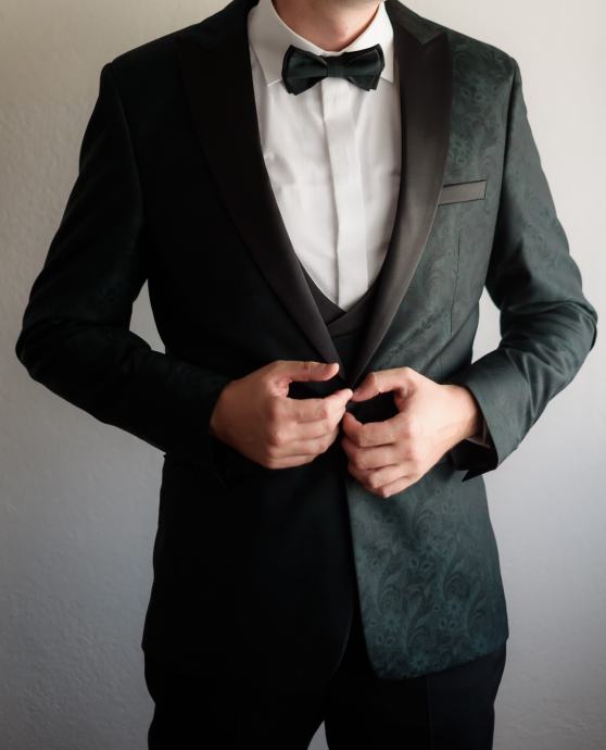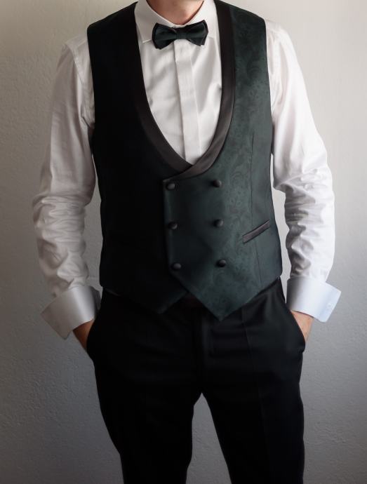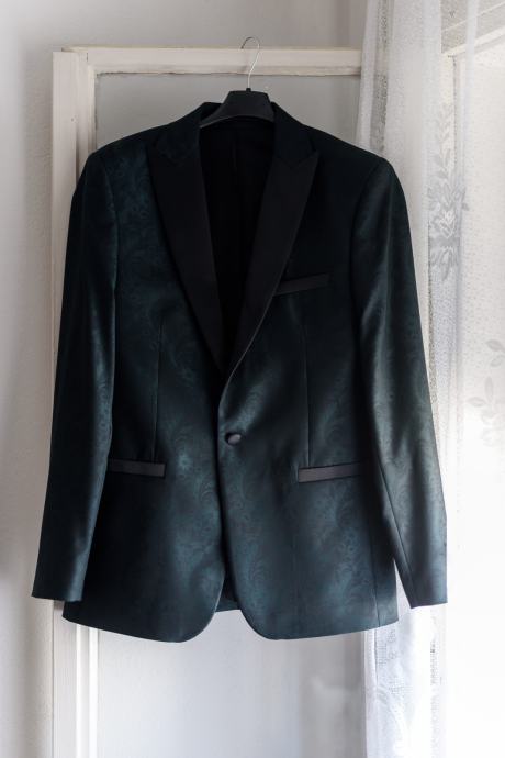 Prodaje se gornji dio odijela tamnozelene boje s ušivenim detaljima prekrojeno po mjerama: