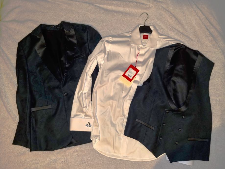 Nošeno je jednom na svadbi. Košulja je nova, ostalo je kemijski očišćeno.