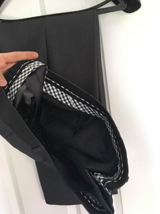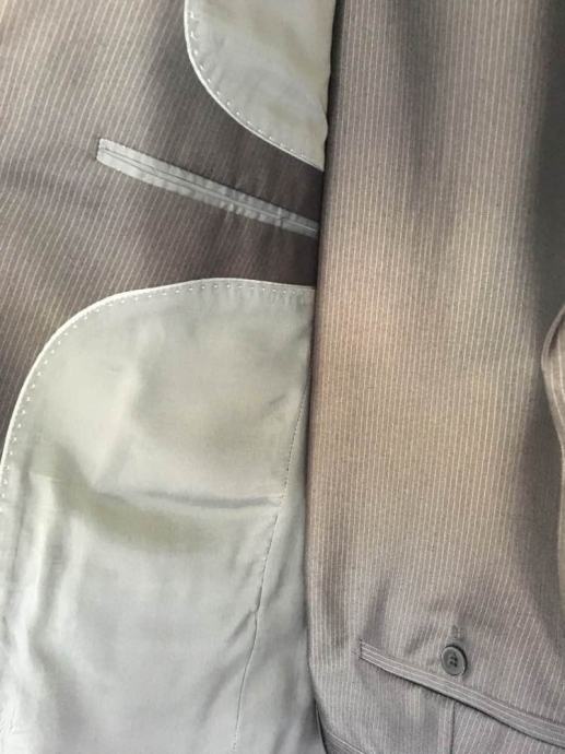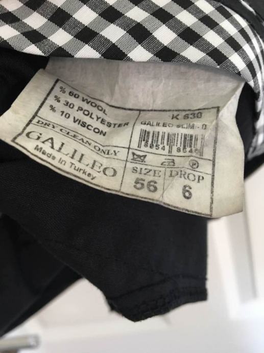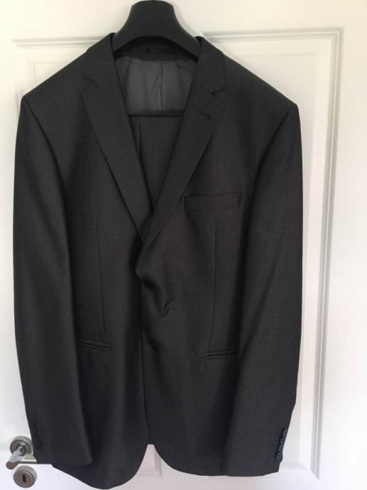 Odijelo tamno sivo kupljeno u Galileu za 1.800 HRK. Nošeno par puta. Na hlačama piše veličina 56. Procijena velicine sakoa je L.