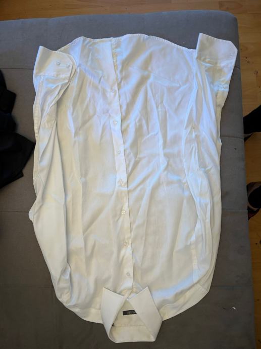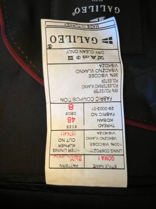 Prodajem jednom obučeno odijelo antracit boje, vel. 48, drop 8 (slim produženi) marke Galileo, sastav: 55% poliester, 35% viskoza, uz odijelo ide i bijela košulja dugih rukava veličine 37/38 (slim/fit) iste marke. Sve je oprano, bez fleka i oštećenja, sastav: 100% pamuk.