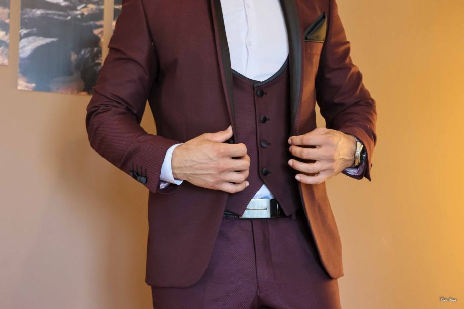 Prodajem bordo odijelo jednom nošeno.