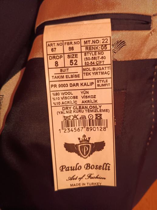 Crno odijelo Paulo Boselli, slim fit, size 52, drop 8. Cijena: 20eura