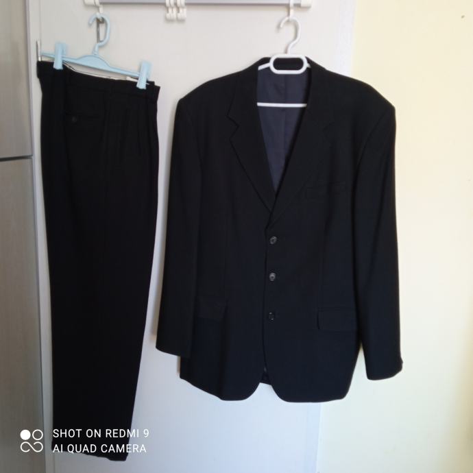 Prodajem crno muško odijelo vrlo malo korišteno, broj 52, materijal 100 % vuna.