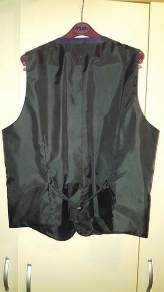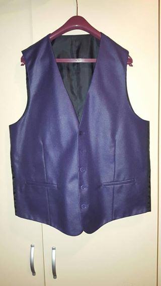 Prodajem novi svečani prsluk za odijelo. Prednja strana tamno ljubičaste boje a stražnja crne boje. Veličina 50, marka C&A.