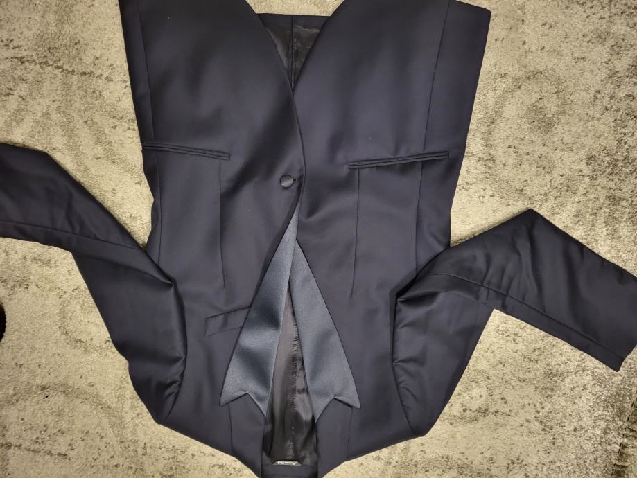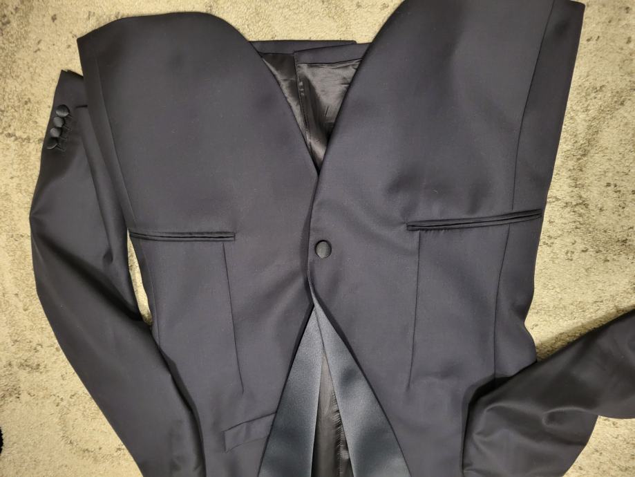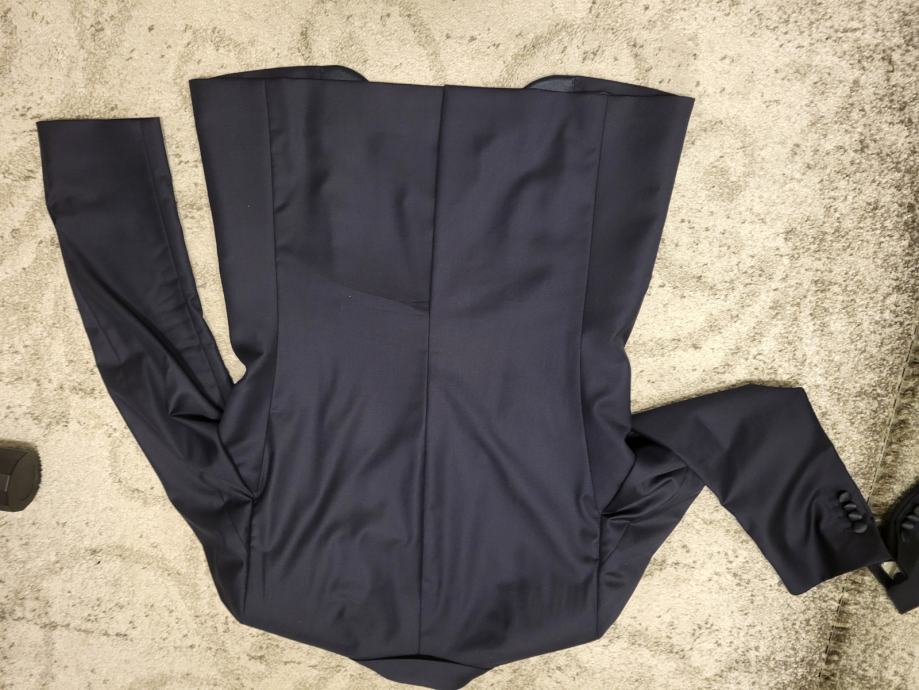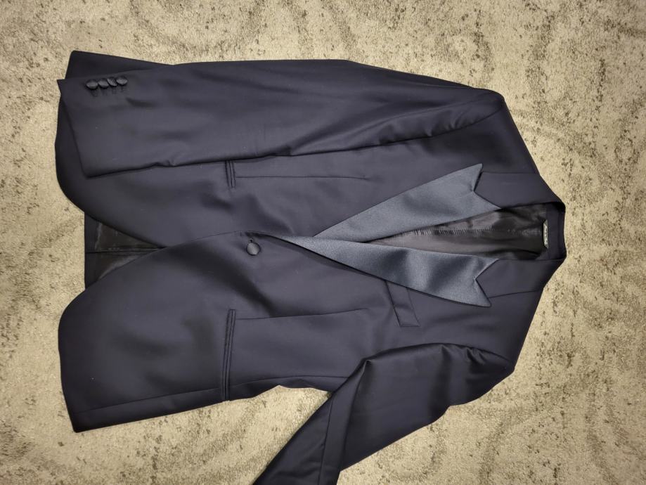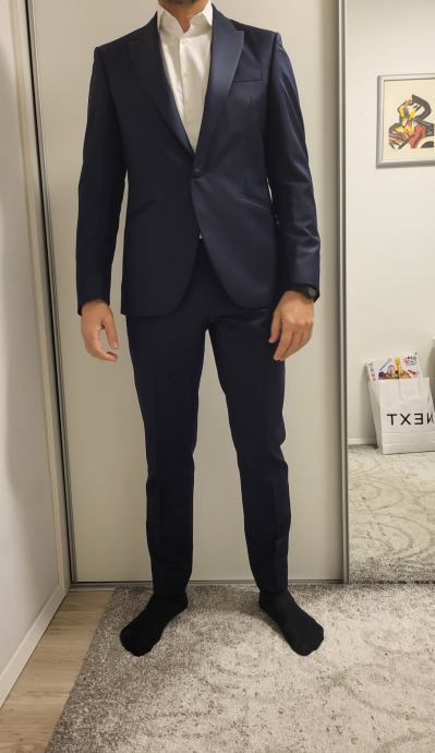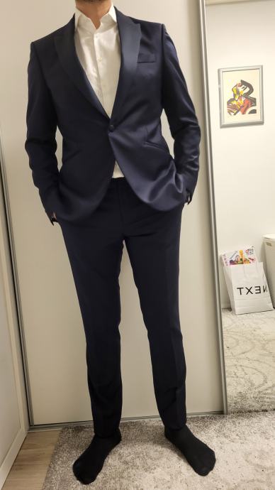 Sako i hlače kupljene za svadbu, nosene jednom na nekoliko sati i od tad stoje u zastitnoj foliji. Kupljene u Martin Arbanasu, placene 5.000kn.