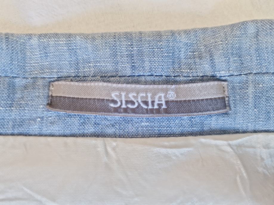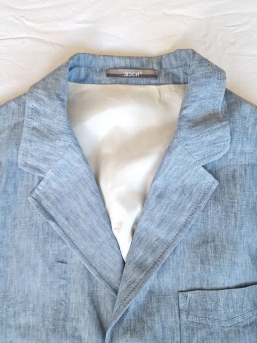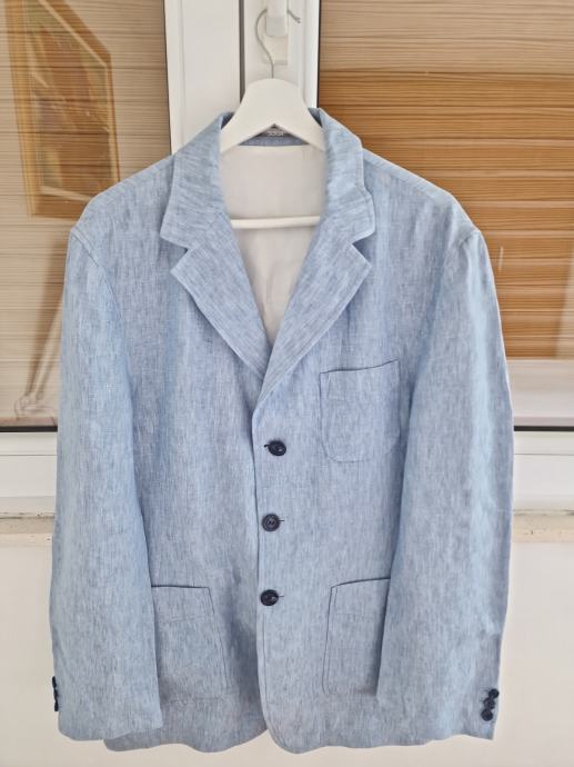 Prodajem Siscia svijetlo plavi laneni sako. Original, odlično očuvan, veličina: 50 (L), prsa: 58 cm. Ostale krojačke mjere na upit. Šaljem poštom ili Tisak paketima poslije uplate.