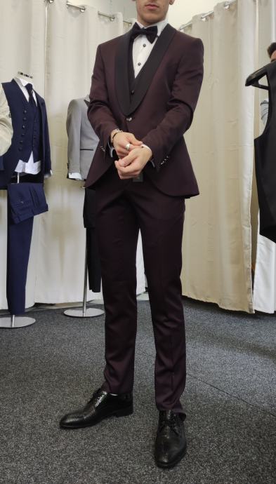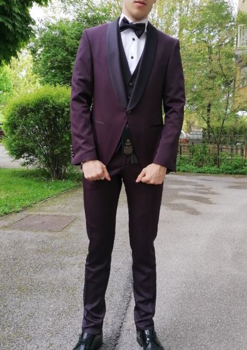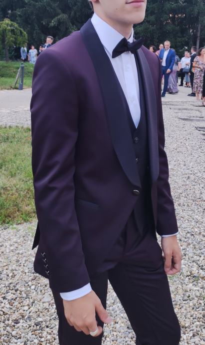 Svečano odijelo bordo boje nošeno jednom na maturalnoj večeri.