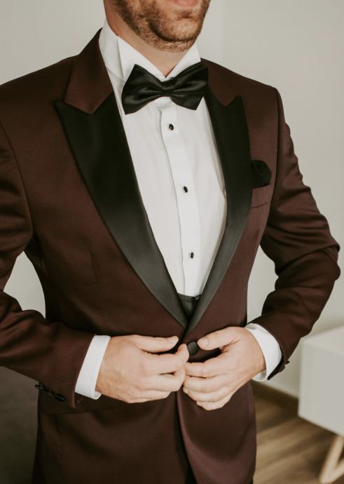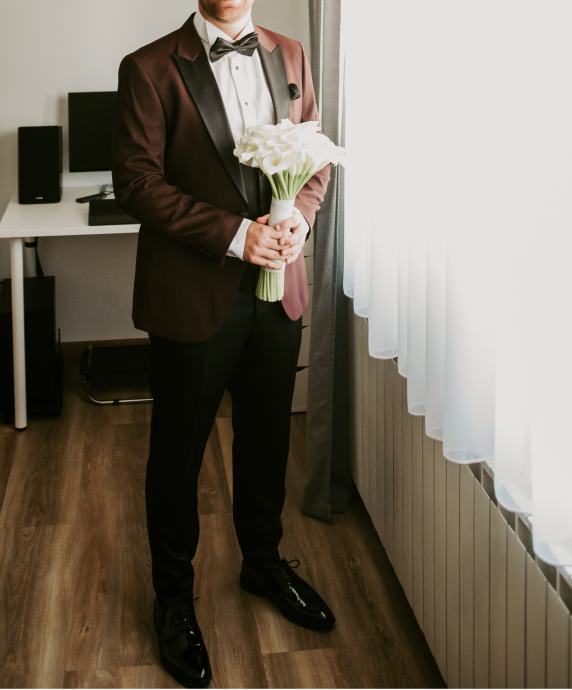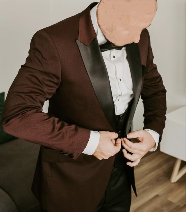 Odijelo čine svečana košulja sa manđetama, prsluk, sako, hlače i leptir mašna