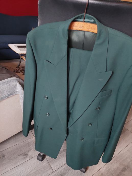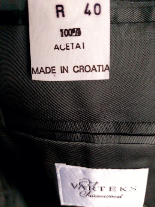 Prodajem original Varteksovo odijelo sačuvano i svega jednom nošeno. br 40 Dužina nogavice mjerena bočno 104 cm s tim da ima još 5 cm za produžetak .U struku je 96 cm..