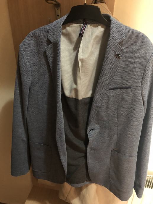 Dva potpuno nova muška sakoa u veličini 56. Jednom nošena. Jedan u tamno plavoj, drugi u svijetlo plavoj boji.