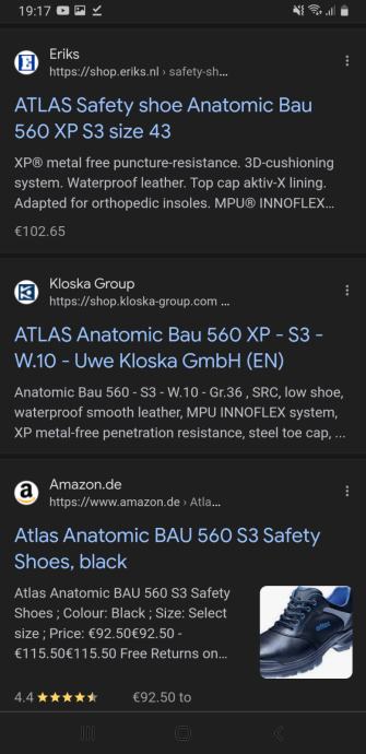 S3 safety shoes have a composite toecap or steel toecap which can take an impact of 200 Joule and a compression of 15.000 newtons.