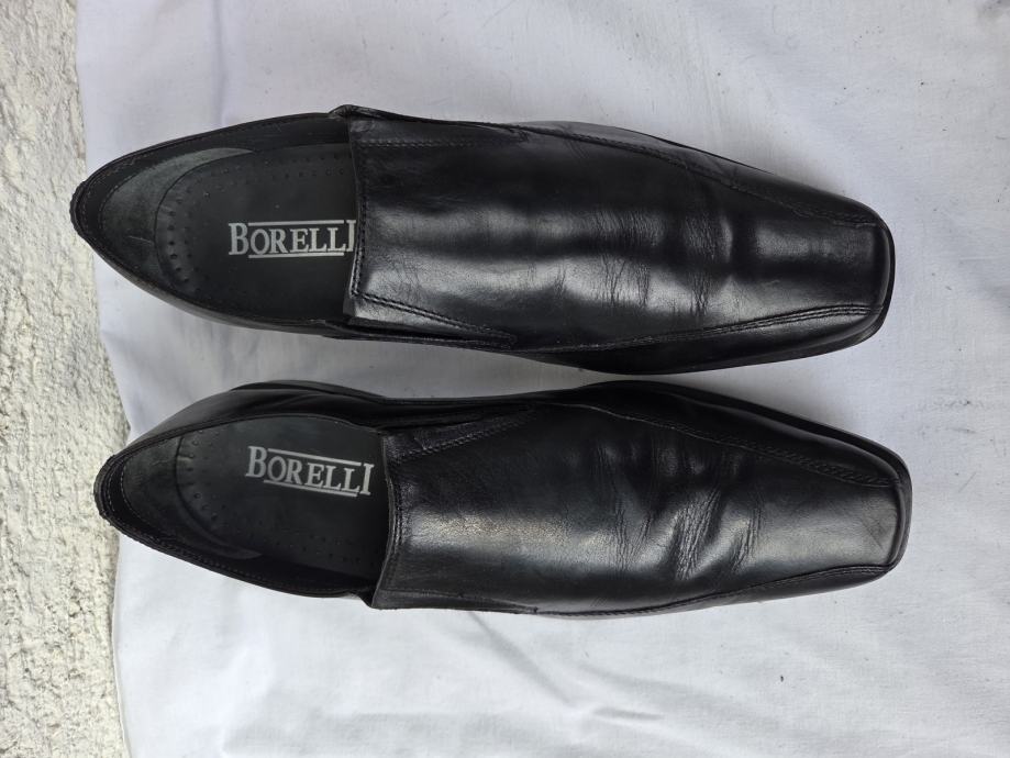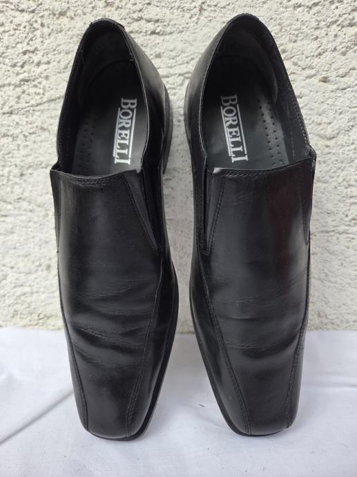 Borelli muške cipele EUR 42 sa unutarnjim gazištem 27 cm...eksterijer i interijer od prave kože....đonovi od prave kože, potplati su samo na đonovima....bez vezica, gumirane trake sa obje strane....dobre za otići na misu, svatovi itd.........OK stanje........pogledajte i ostale moje oglase
