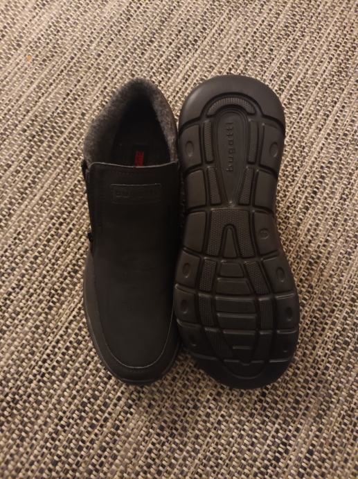 Prodajem Bugatti muške cipele u crnoj boji, veličina 43. Radi se o slip-on modelu s decentnim detaljima i udobnim đonom. Cipele su nove, bez etikete. Gornji dio je tamne boje s decentnim šavovima, a đon je fleksibilan s Bugatti oznakama.