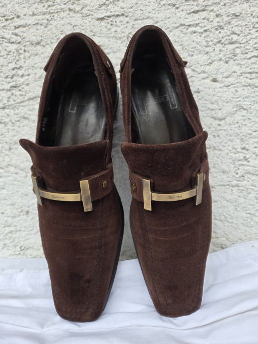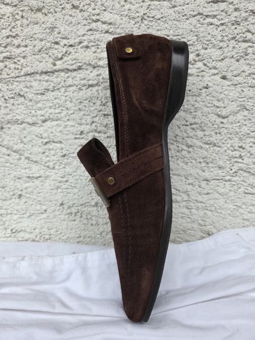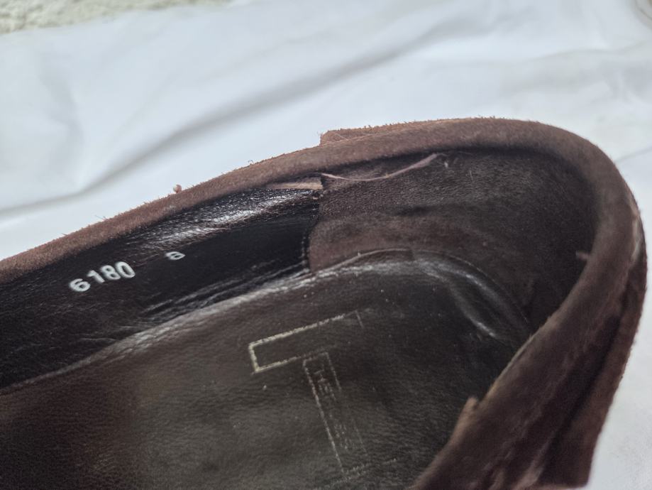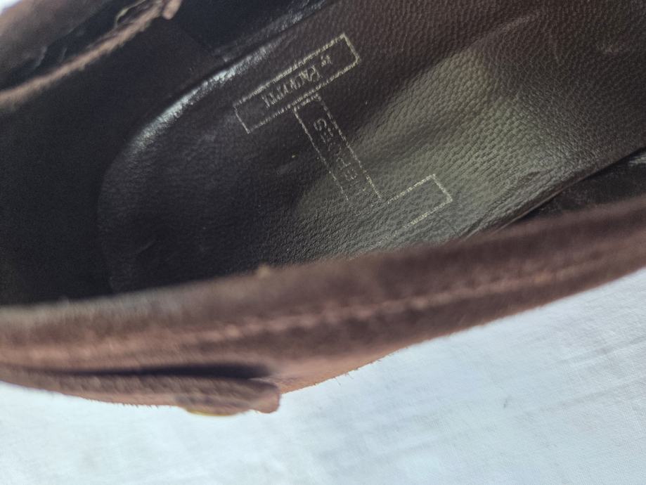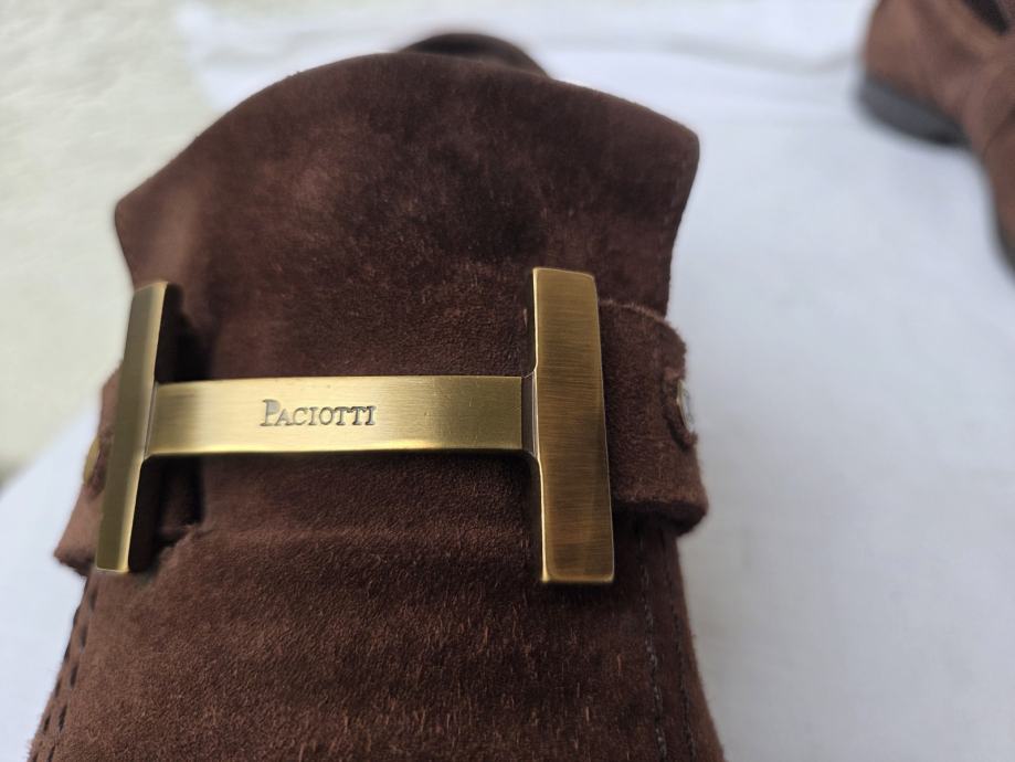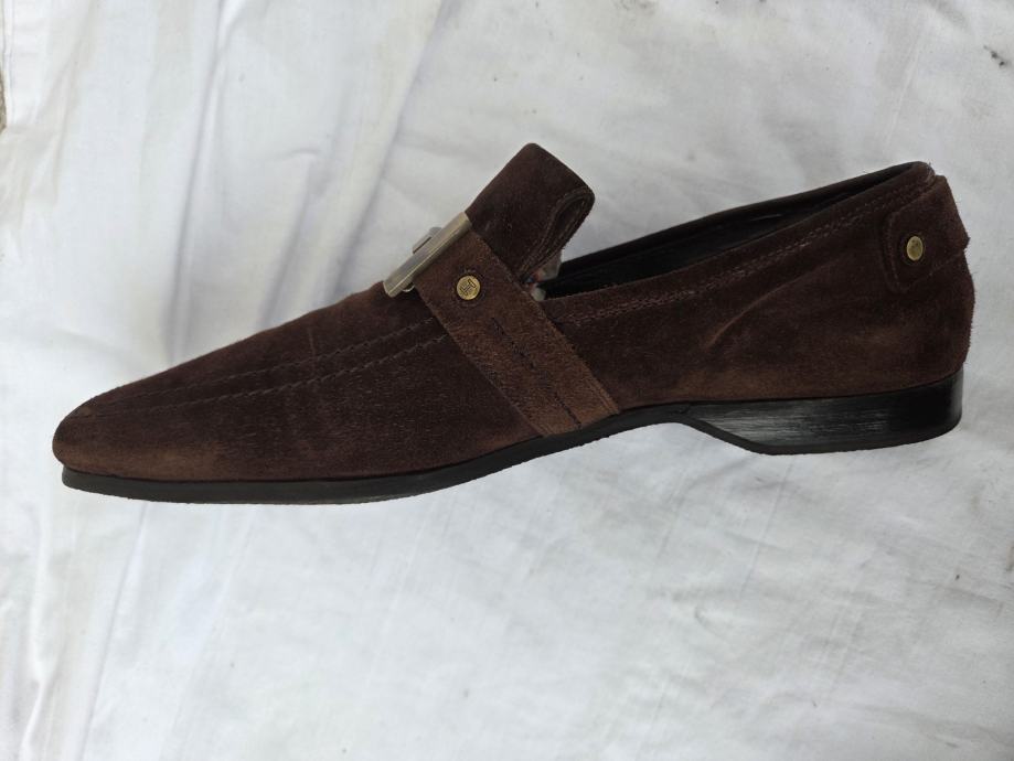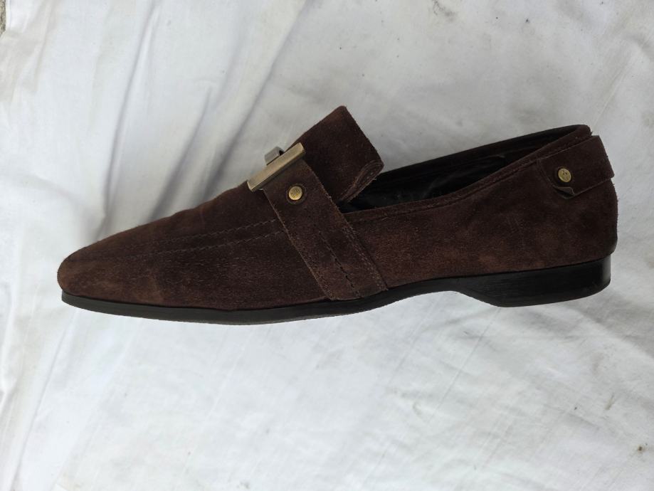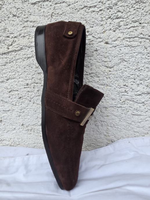 Cesare Paciotti muške cipele mokasine UK 8 sa unutarnjim gazištem 28.5 cm- provjereni komotni EUR 43......eksterijer kratka antilop koža boja čokolade, interijer prava koža petni dio nelakiran, ostalo lak boja crne čokolade.....đonovi i peta izliveni u jednom komadu.....uredne, čvrste, hodni sloj đonova nije izlizan....pogledajte i ostale moje oglase