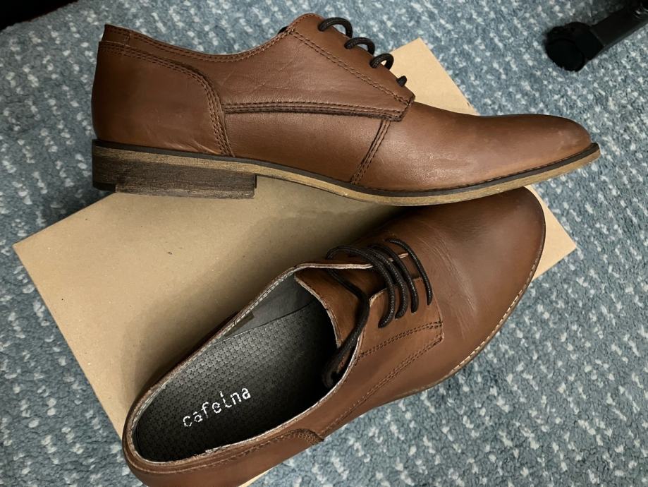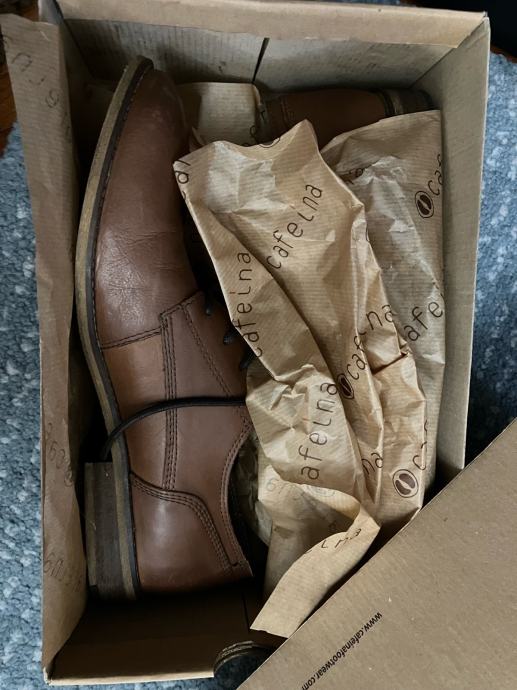 Cipele Cafeina br. 43, smeđe, koža, kožni potplat, made in Portugal, kupljene za svadbu i jednom nosene.