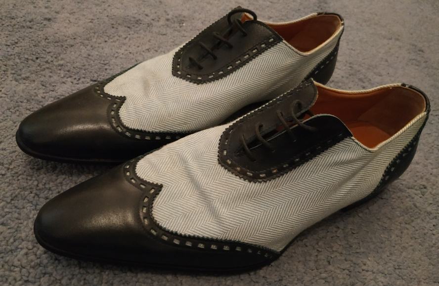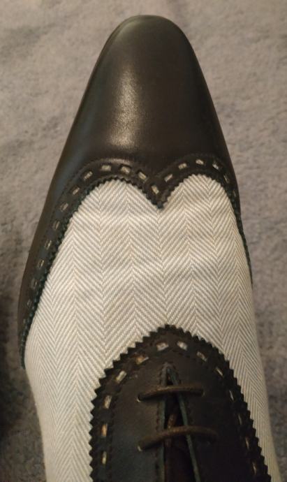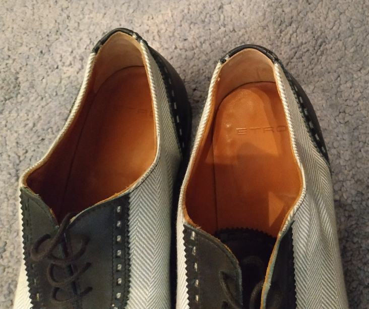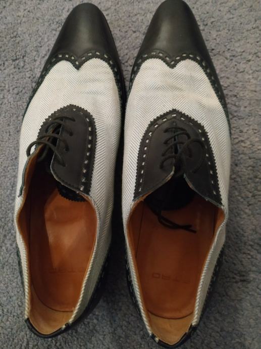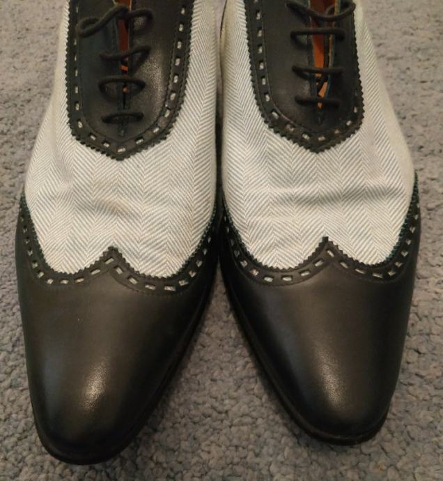 ETRO, muške vintage cipele, crno koža s svijetlo-plavo tkaninom.