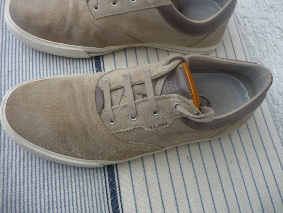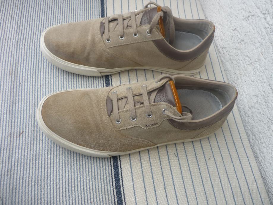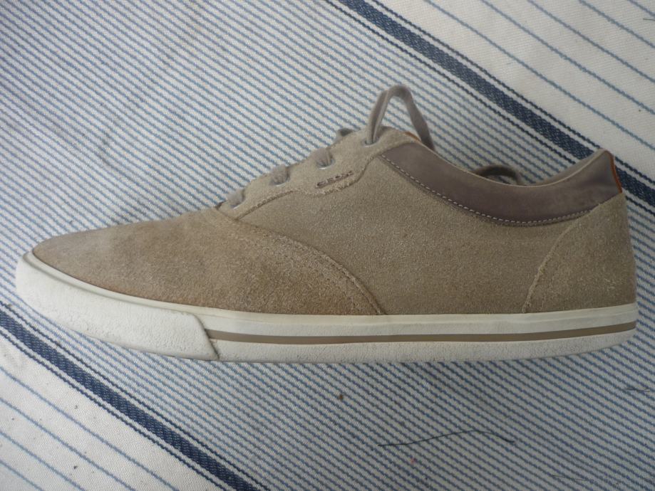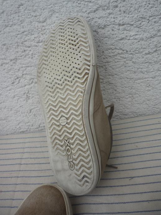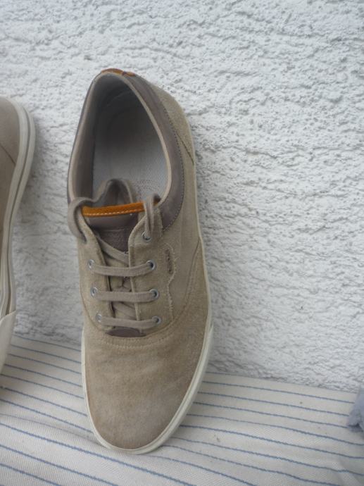 Geox muške sportsko kežual cipele sa steperom dužine 30.5 cm ili hrvatski broj 45; vanjski sloj od fino brušene prirodne kože , interijer tekstilni; ravni gumirani Geox đonovi- mrvicu izlizani na vanjskom petnom dijelu - korekcija u cijeni; pogledajte i ostale moje oglase...rez. za N. Zagreb