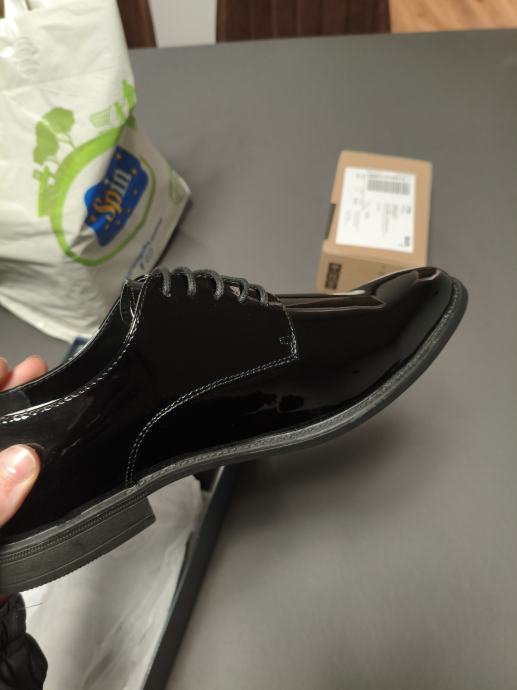 Elegantne crne lakirane cipele, veličine 43, potpuno nove i nikad nošene. Dolaze u originalnoj kutiji i predstavljaju savršen izbor za formalne prilike. Kvalitetna izrada garantira udobnost i dugotrajnost.