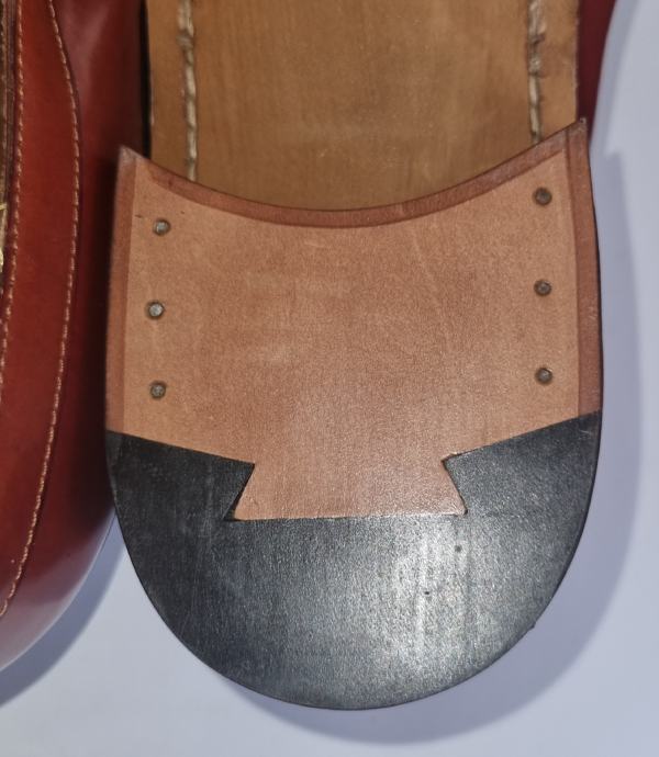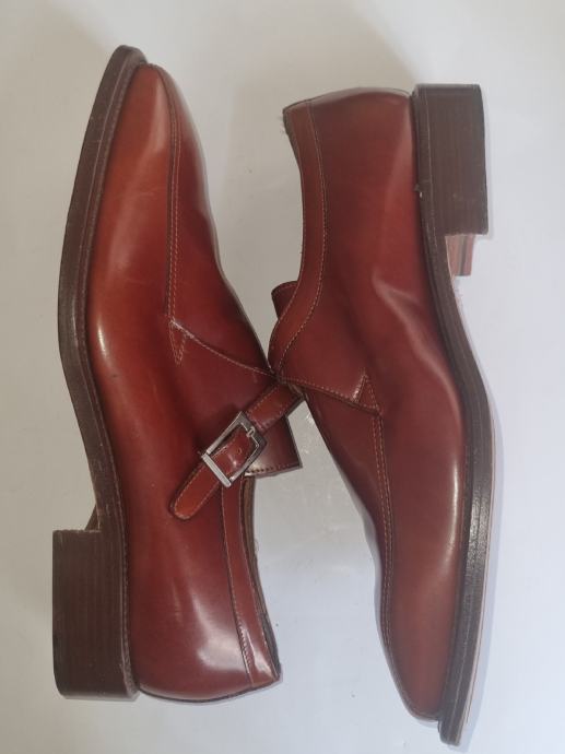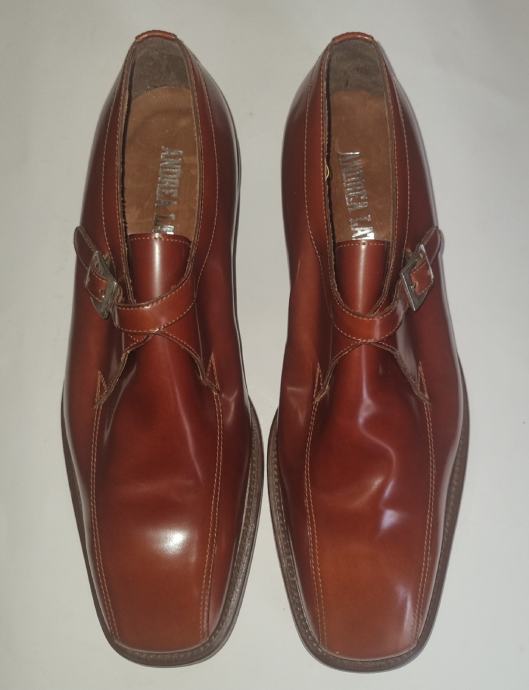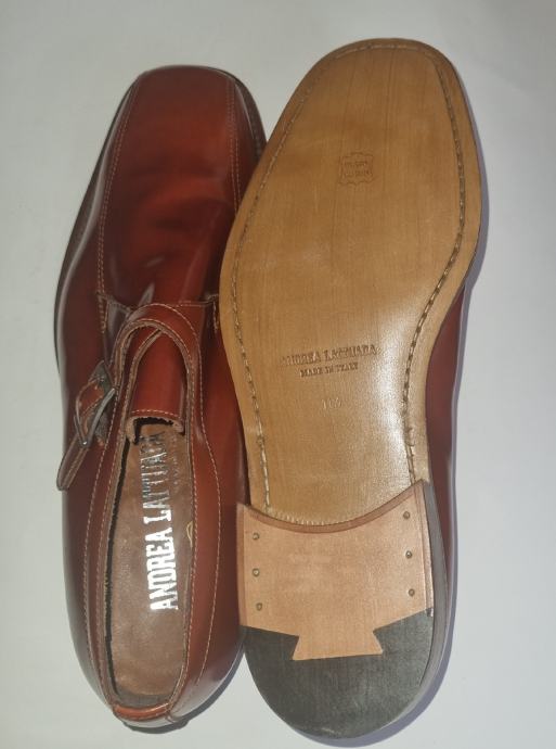 Ručno rađene muške kožne cipele "monk" stila, proizvedene u Italiji, veličina cipela je 11 1/2 što odgovara europskoj veličini 46. Cipele su u cijelosti izrađene od prirodne kože, uključujući potplat, izuzev ojačanja na petnom dijelu. Cipele nisu nikad nošene.