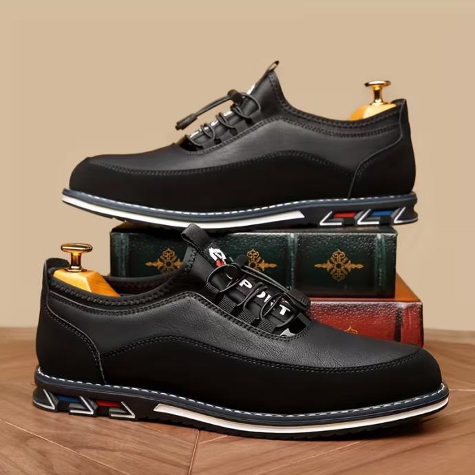 Muške modne poslovne ležerne cipele, niske cipele za sva godišnja doba s vezicama i elastičnom trakom, jednobojno PU gornjište i gumeni potplat.