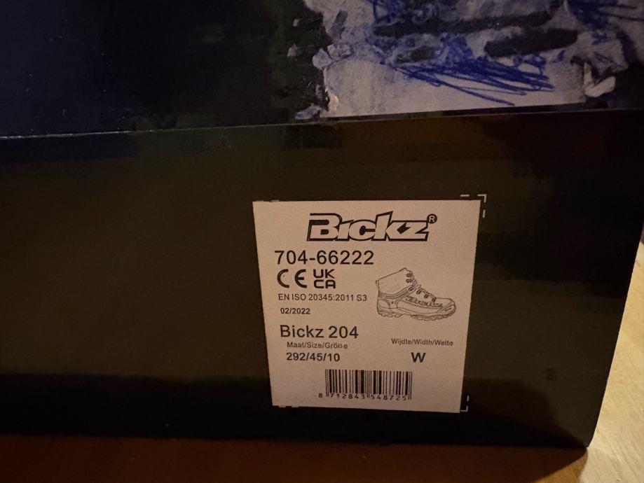 Prodajem nove muške radne cipele Bickz 204 u crnoj boji, veličina 45. Cipele su visoke konstrukcije s vezicama, izrađene od crne kože. Certificirane su prema normi EN ISO 20345:2011 S3, što znači da nude zaštitu za zahtjevne radne uvjete.