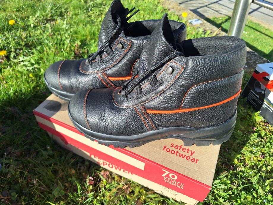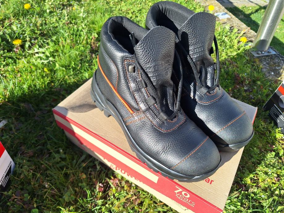Izuzetno meka vodoodbojna goveđa kože. Brizgani, dvokomponentni (PU+guma): antistatičan, uljeotporan, protuklizan (SRC), otporan na habanje, otporan na temperaturu .