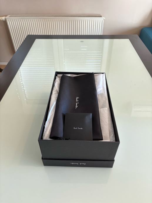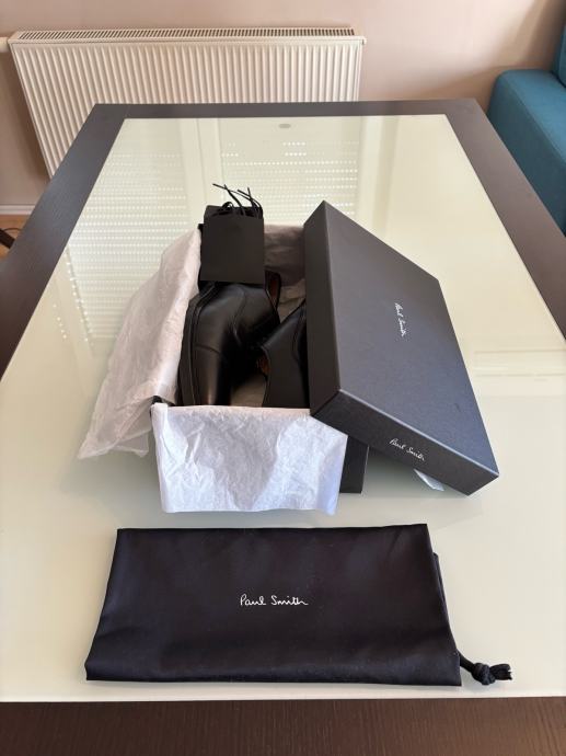Prodajem Paul Smith cipele za odijelo (crne, kožne). Cipele su jednom nošene na svadbi i na potplatu se vide tragovi nošenja. Osim toga, cipele su kao nove. Prodajem ih jer je kalup nešto veći. Inicijalno se činilo da mi veličina odgovara, ali nakon jednog nošenja ipak su mi prevelike. Šaljem u originalnoj kutiji s originalnom kesom za cipele i zamjenskim vezicama.