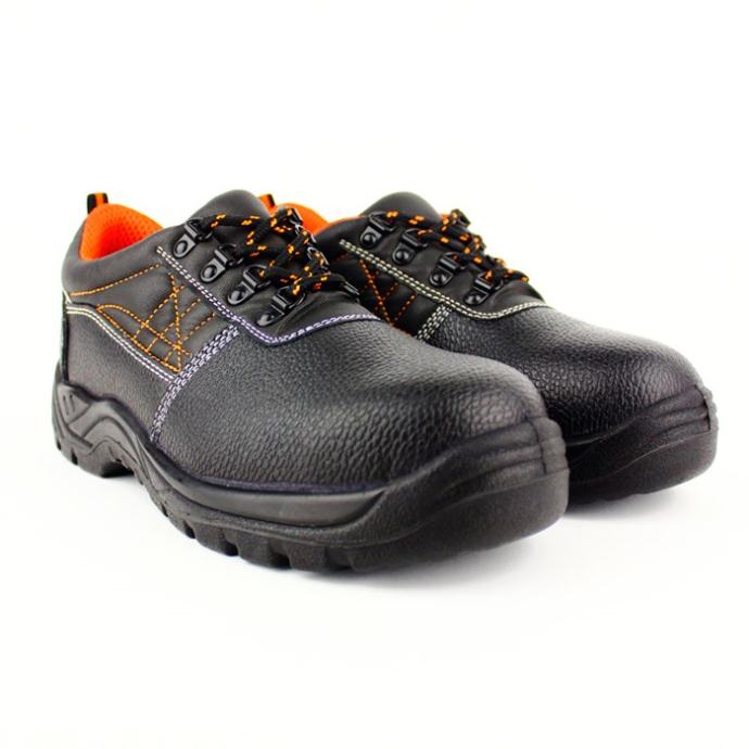 Opis: Niske radne cipele u crnoj koži sa postavljenim jezikom za bolju udobnost i zaštitu