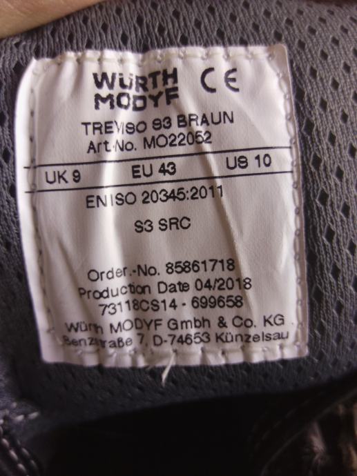 Kožne radne cipele sa zaštitnom kapicom i zaštitom đona. Oznaka S3