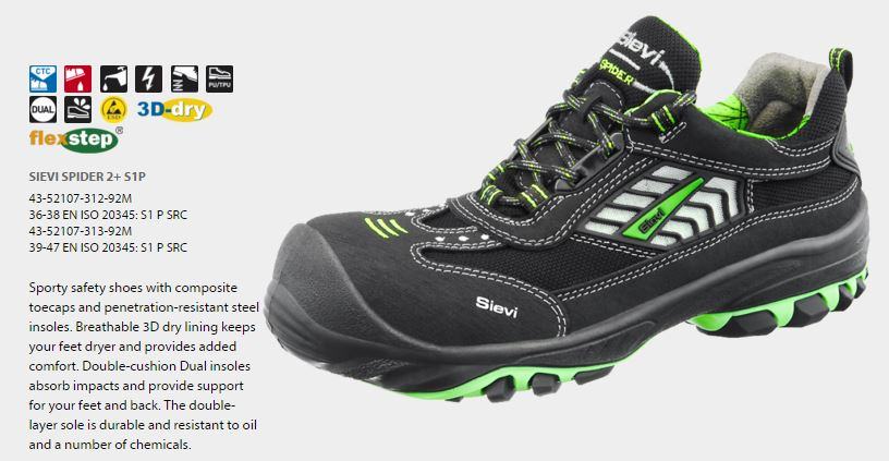 Radne sigurnosne cipele sportskog dizajna s kompozitnom kapicom i ulošcima od neprobojnog čelika . Prozračni 3D uložak čuva stopala suha i pruža dodatnu udobnost. Ulošci s dva jastuka upijaju udare i pružaju podršku za noge i leđa. Dvostruka sloj je izdržljiv i otporan na ulja i brojne kemikalije.