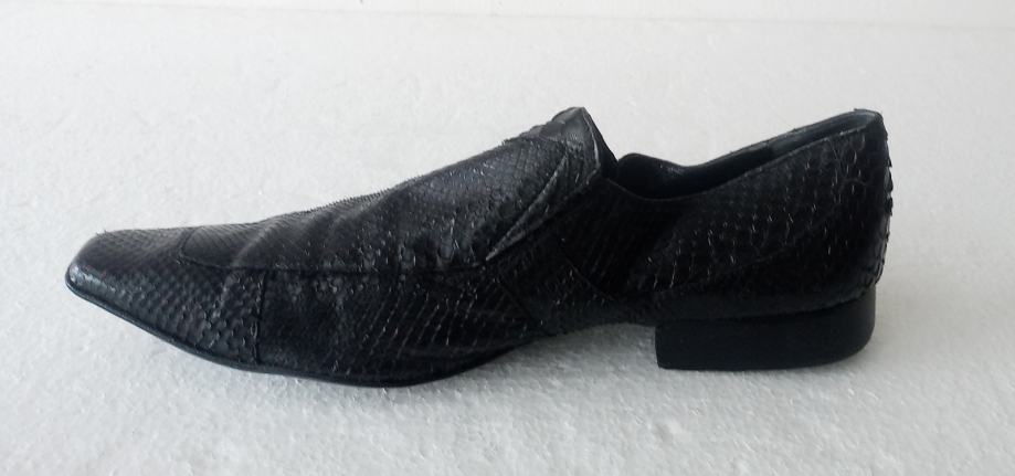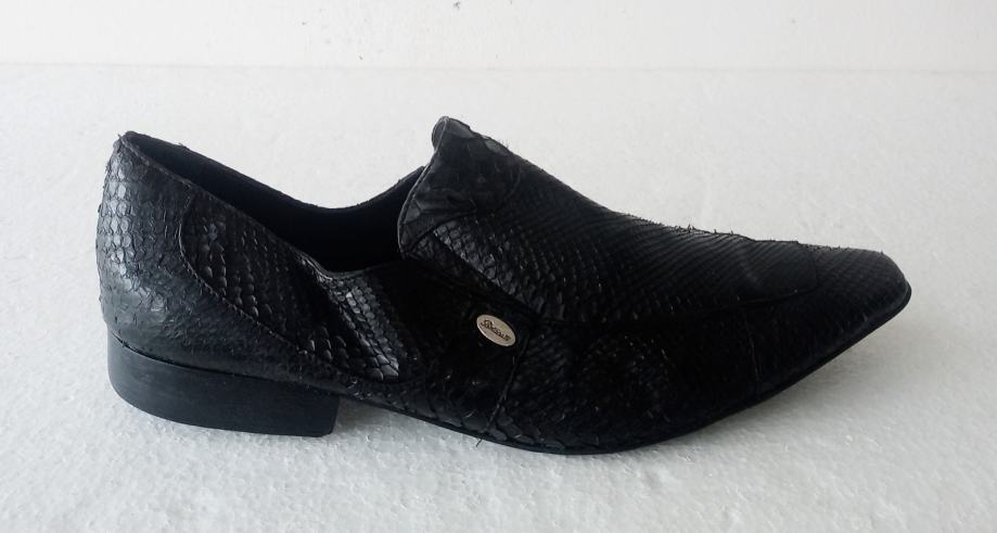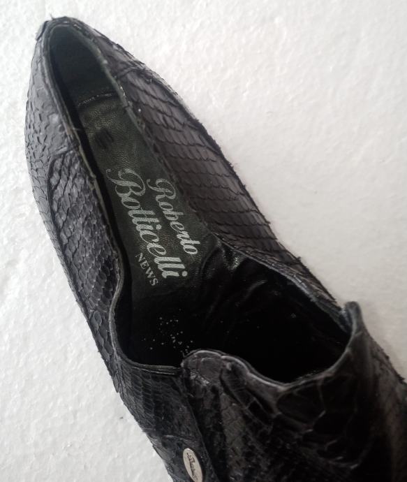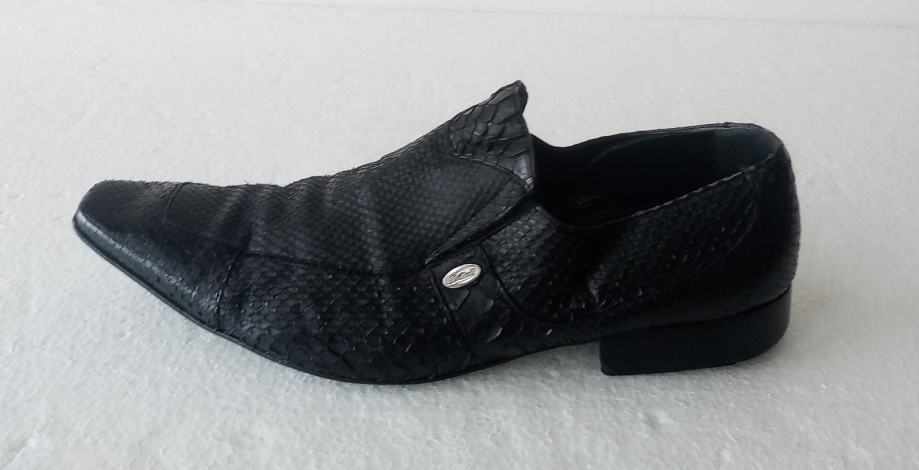 Luksuzne dizajnerske muške cipele Roberto Boticelli, u crnoj boji. Veličina 43. Cijele izrađene od prirodne kože, a gornjište od prave zmijske kože. Nošene, u ispravnom stanju i cijena povoljna obzirom na cijenu novih (oko 500 €).