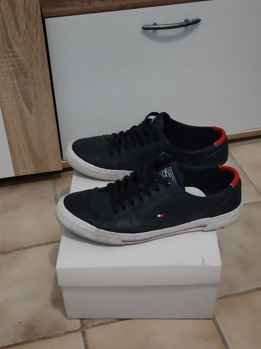Muške cipele-tenisice Tommy Hilfiger vel 42 tamno plave kožne, udobne za nošenje u proljeće i jesen. Nošene par puta. Razlog prodaje-višak. Moguca zamjena za neki drugi odjevni predmet ili razno.