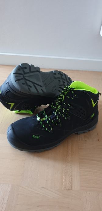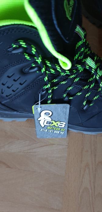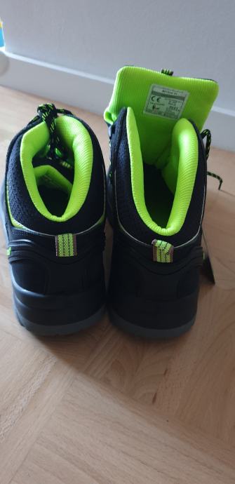 Zaštitne cipele za gležnjeve, kožne, s plastičnim vrhom i uloškom od kevlara, reflektirajući dodaci. Materijal: gornjište od 1,6 - 1,8 mm cijepane nubuk kože (jedan komad), vanjska TPU zaštita za petu, bez metalnih dijelova, podstava od prozračne, otporne na habanje.