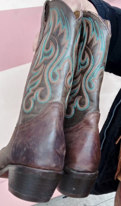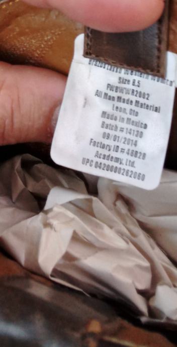 Druge su Brazos Lasso Western Women made in Mexico vidljivo porijeklo na jednoj od slika kao i izmjerena dužina džona u cantrimetrima na slici. Ne korištene